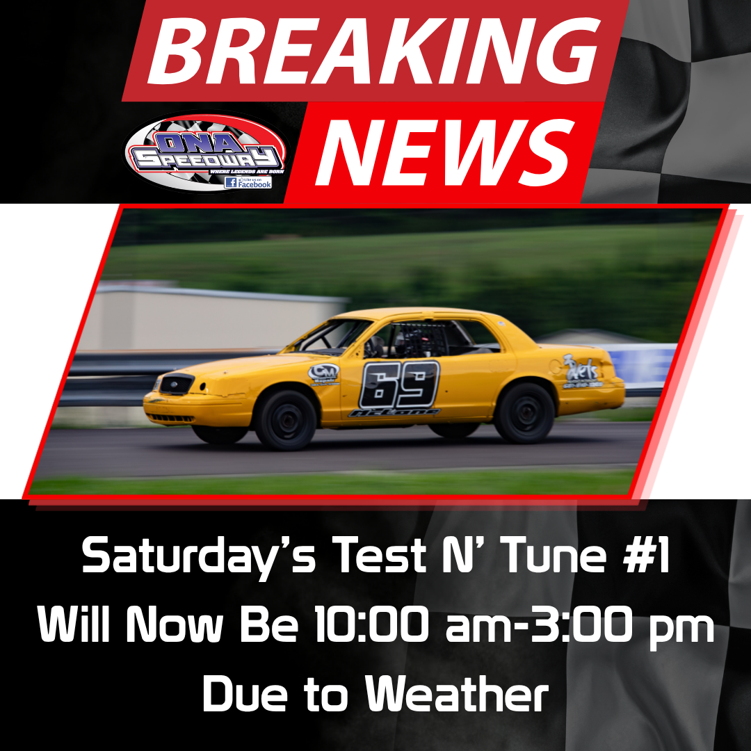 We will have a Test N’ Tune on Friday, May 1st from 5:00 pm until dark. Pit pass cost is $25 for race car and driver and $10 per person.